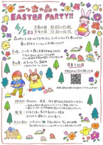 また今年は、森に遊びに行くのがまだちょっと難しいけどイースターパーティー気になる♬という0,1,2歳のお子様とおうちの方向けにプレイースターパーティーをニッセ館内で開催いたします。