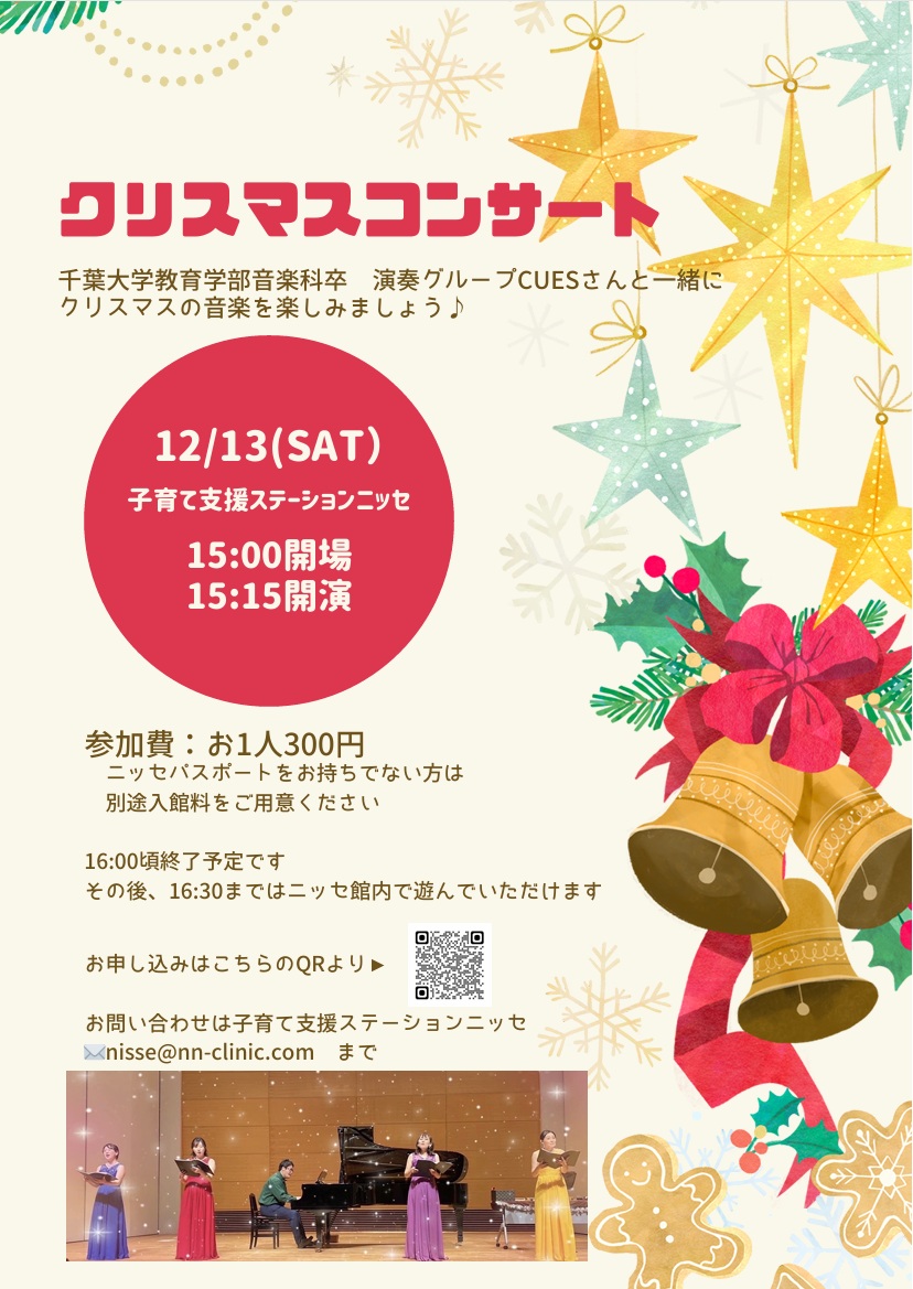 千葉大学教育学部音楽科卒の演奏グループCUESさんと一緒にクリスマスの音楽を楽しみましょう🎵