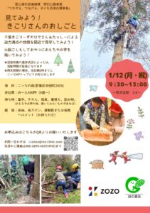 今年もNPO法人グリーンウッドワーク協会の小野敦さん(おのちゃん)と椿ゆかりさん(ばきちゃん)をニッセの森にお迎えして、ワークショップを開催します。
